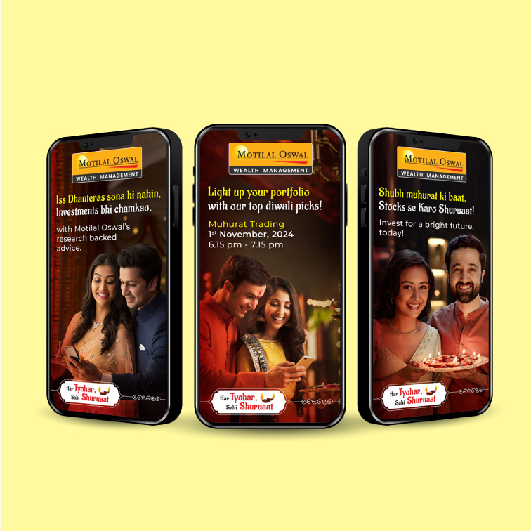 For the Diwali season, Motilal Oswal was looking to launch a Mahurat Trading campaign. Our team develop a relatable and quirky campaign that resonates with the brands longterm customers. We crafted a captivating brand film that encapsulated the festive spirit and the opportunity of Mahurat Trading. This campaign was seamlessly extended across social media platforms and offline channels, ensuring widespread engagement and visibility.